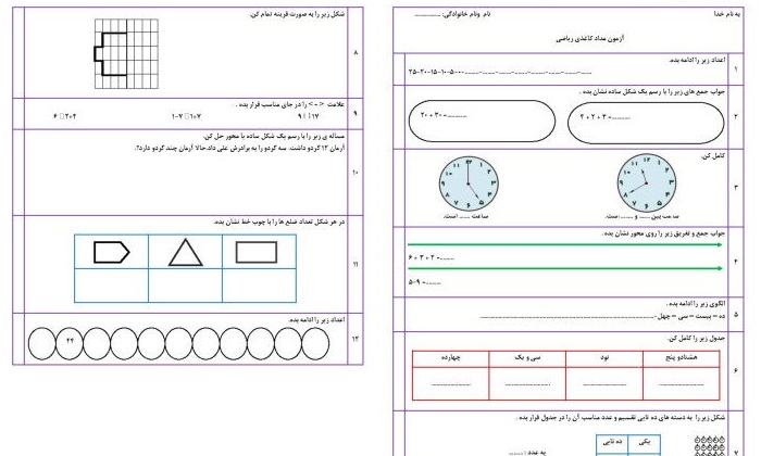 نمونه سوالات ریاضی اول ابتدایی (دانلودPDF)